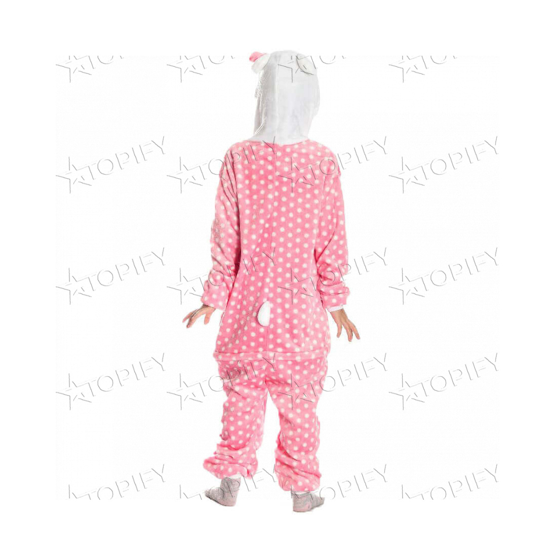Кигуруми Кошка в горошек изготавливается из очень мягкой, приятной на ощупь и гипоаллергенной ткани велсофт. Пижама-кигуруми Кошка Hello Kitty специально для настоящих модниц, таких же, как и сама кошечка! Модель выполнена из розовой ткани в белый горошек и с белым «животиком», а также узнаваемой «мордочкой» Hello Kitty на капюшоне. Идеально подходит для подарка или в качестве маскарадного костюма для проведения детских праздников.