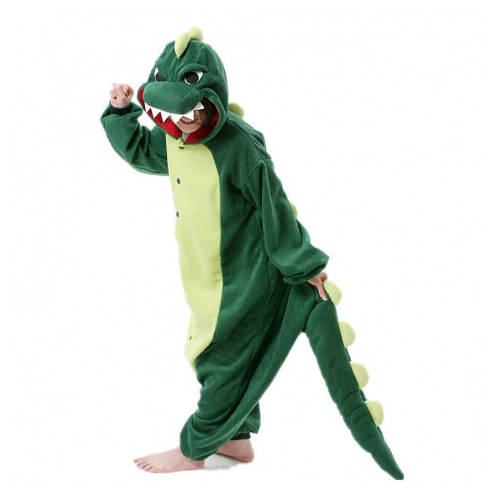 Кигуруми Зеленый Динозаврик выполнен из качественного материала велсофт, который приятен на ощупь и прост в уходе. Капюшон костюма выполнен в виде головы динозавра, а объемный хвост еще больше увеличивает сходство с мультяшным героем.