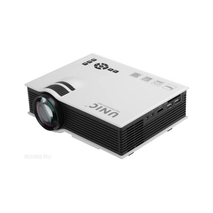 UNIC UC40 PLUS – компактный проектор великолепного качества, с помощью которого Вы сможете создать у себя дома настоящий домашний кинотеатр. Эту модель отличают высокая яркость (800 люмен) и контрастность (800:1), благодаря чему создаётся потрясающе чёткая, яркая и насыщенная картинка, которую можно проецировать на любую ровную светлую поверхность. Возможность настройки разрешения до 800 х 480 пикселей позволяет создать изображение, соответствующее экрану диагональю до 120 дюймов, сохранив прекрасное качество. Фокус настраивается вручную специальным колёсиком рядом с линзой проектора. Современная лампа, используемая в конструкции модели, гарантирует продолжительный срок работы (до 20 000 часов) без потери качества проецируемого изображения.